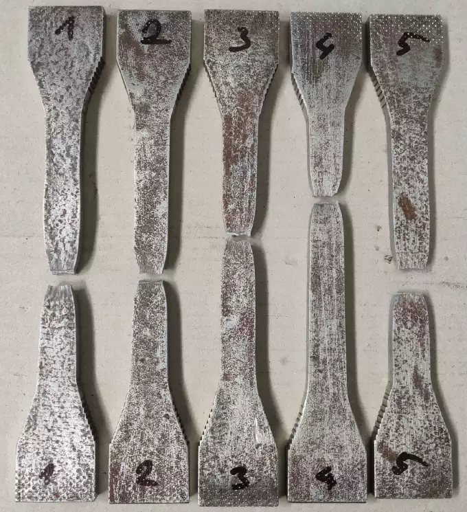 Pro destruktivní stanovení materiálových charakteristik oceli se z konstrukce odebere celkem 5(10) zkušebních těles, které dále předáváme na potřebné mechanické obrobení do požadované velikosti a tvaru. Následně se na vzorkách provede destruktivní tahová zkouška v akreditované laboratoři TZÚS Praha.
