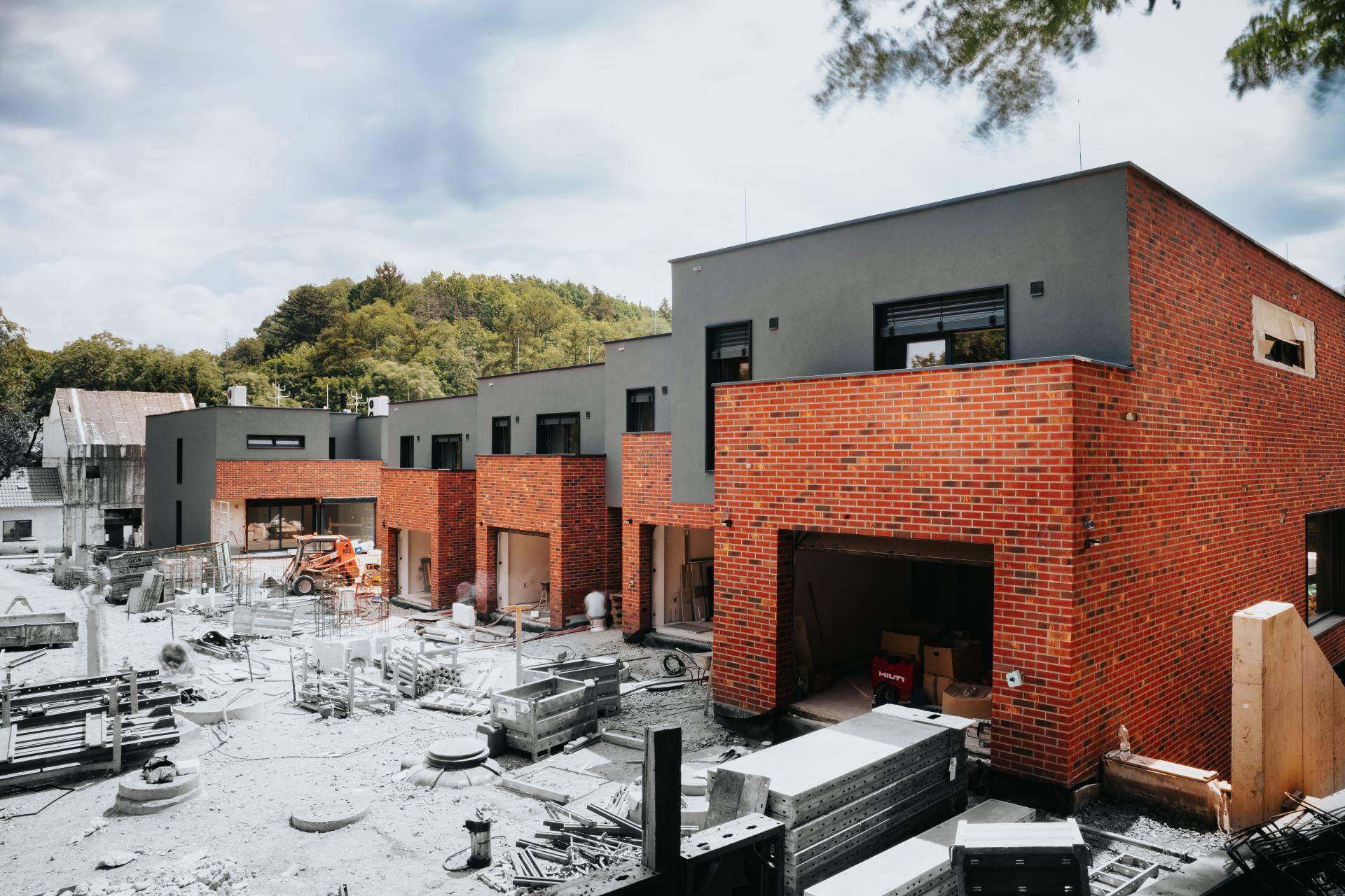 Z důvodu sprašových hlín na úrovni základové spáry jsme objekty umístili na piloty průměru 600mm a základovou desku tloušťky 200mm jsme navrhli jako strop.